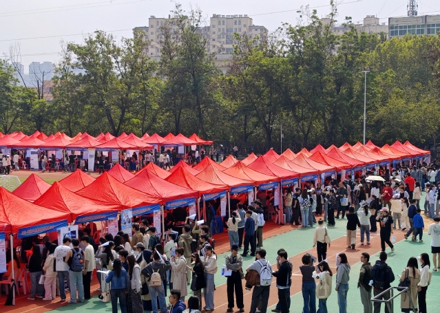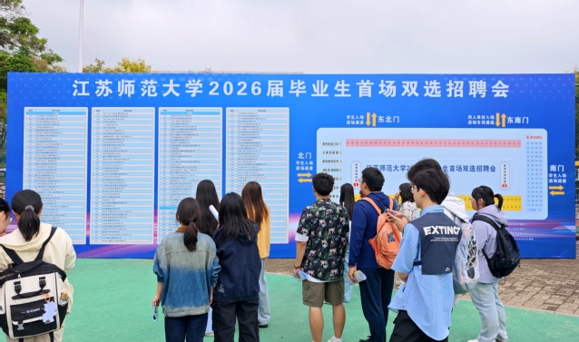 9月20日上午,我校2026届毕业生首场双选招聘会在泉山校区田径场举办,各用人单位招聘工作人员,我校学生工作部、研究生工作部负责同志,各学院党委副书记、就业辅导员、毕业班班主任及万余名学生参加活动。