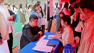 招聘会现场气氛热烈,人潮涌动。来自江苏、上海、山东、安徽等地的近200家用人单位齐聚一堂,行业类别涉及教育、金融、制造、新能源、生物医疗、信息技术等多个领域。徐州市、徐州市铜山区、苏州张家港市等地人社部门设立招聘专区,现场开展引才纳才政策推介活动。招聘会还吸引了在徐高校及周边地区兄弟高校的毕业生前来求职应聘。