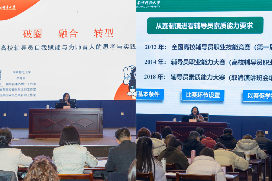会上,商亮副校长从“懂你、懂我、懂行”三个维度深入剖析了如何聚力推动辅导员能力提升、打造最懂学生的辅导员队伍,整场报告饱含教育温度与育人智慧,系统分析了新时代辅导员队伍面临的形势任务,深刻阐释了“与学生同行、与学生同心”的工作理念,明确提出了“三化”发展路径和“一专多能”的能力要求,为辅导员队伍高质量发展指明了方向。校党委常委、组织部部长、统战部部长范锋围绕学校“干部能力提升年”有关工作部署,从文件出台背景、主要内容和贯彻落实三个方面作了深入解读,勉励全体辅导员做忠诚可靠、表里如一、担当尽责的好干部。全国高校辅导员年度人物、南京邮电大学外国语学院党委副书记高艳丽以“破圈、融合、转型”——高校辅导员自我赋能与为师育人的思考与实践,全国高校辅导员“十佳标兵”、南京师范大学环境学院分团委书记焦林童以“与学生同行”——努力做成人达己的新时代高校辅导员为题,分享工作思考、路径探索和实践成果。