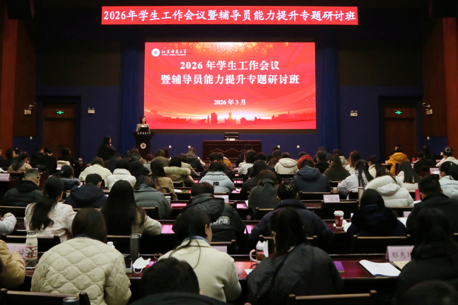 党委学生工作部部长杜昀围绕2026年重点学生工作进行了解读和部署。她指出,树立和践行正确政绩观对高校辅导员队伍干事创业具有根本性的指导意义,辅导员的政绩不在表面文章和花架子里,而在学生心里;不在开过会、谈过心、办过活动的流程里,而在班风正、学风浓、学生优的实际成效里;不在短平快的包装打造里,而在学习思考、躬身实践、久久为功的潜心奋斗里。人人争做用心托举大学生成长、用力锤炼职业本领、用情贡献学生工作高质量发展的有为有位的师大辅导员。