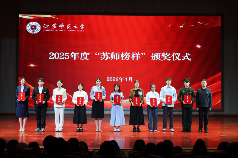 最终,历史文化与旅游学院李越等10位同学获得江苏师范大学2025年度“苏师榜样”,其余同学分获提名奖、入围奖。活动现场同步举行2025年立德树人奖学金颁奖仪式。此次活动充分发挥先进典型示范引领作用,生动诠释了我校“崇德厚学、励志敏行”的校训精神,为全校学子树立起可亲、可敬、可学的身边榜样。
