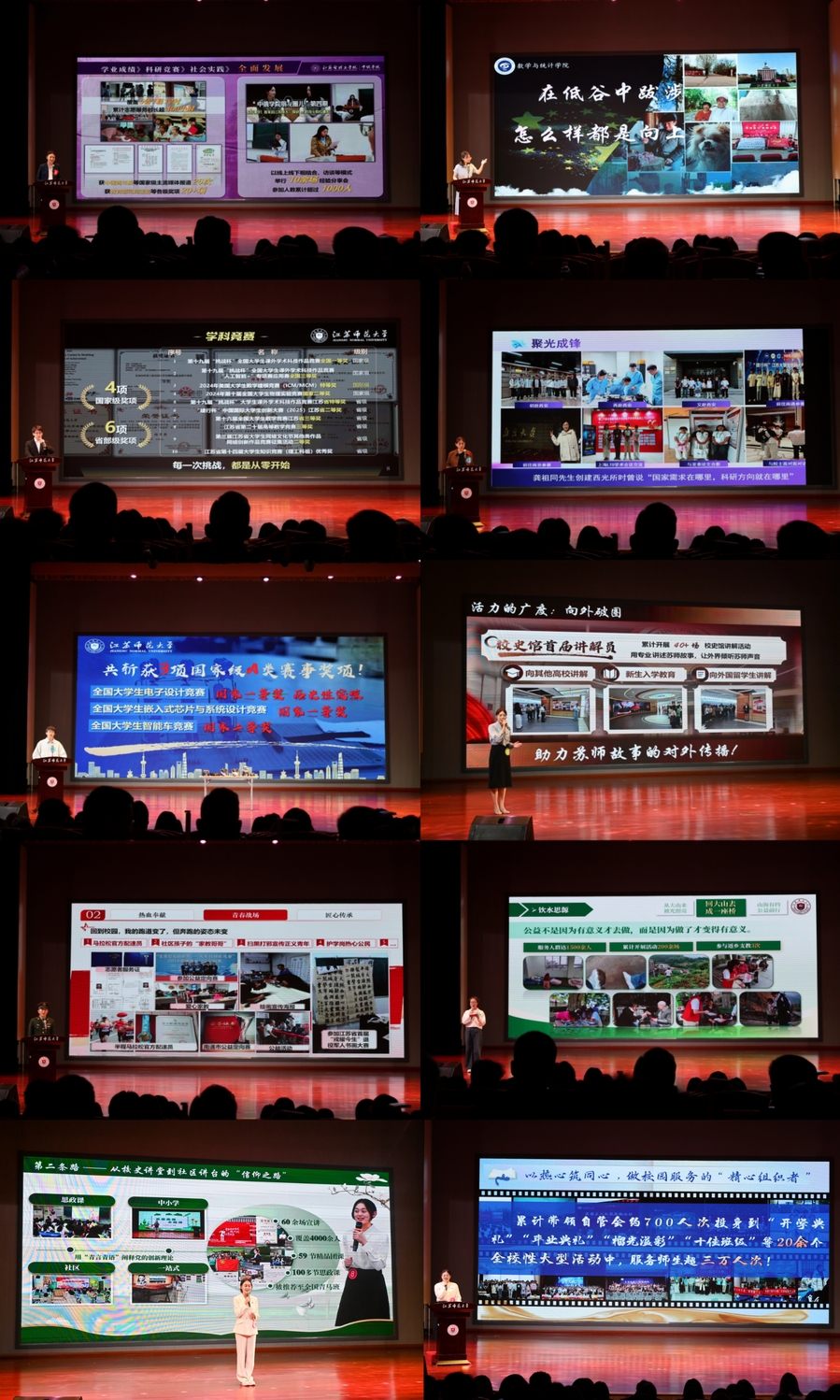 展评现场,27位参评学子以个人陈述、成果展示等形式,生动讲述青春奋斗故事,全面展现苏师青年在学业科研、服务奉献、技能创新、公益志愿、自强不息、文体活动等方面的优异成绩与精神风貌。他们中有笃学不倦、潜心求索的学业楷模,以勤学深耕学业沃土,用坚守筑牢成长根基;有孜孜不倦、深耕学术的科研达人,以钻研勇攀创新高峰,用实干结出丰硕成果;有多才多艺、朝气蓬勃的活力之星,以奋进展现青春朝气,用热爱书写多彩篇章;有精益求精、追求卓越的技能状元,以磨砺锤炼专业本领,用专注成就过硬实力;有心怀大爱、无私奉献的公益天使,以热忱传递温暖善意,用担当诠释赤子初心;有恪尽职守、默默付出的服务表率,以坚守践行责任使命,用服务彰显青年作为;有逆境逐梦、笃行不怠的励志之星,以自强跨越成长荆棘,用拼搏点亮人生理想。